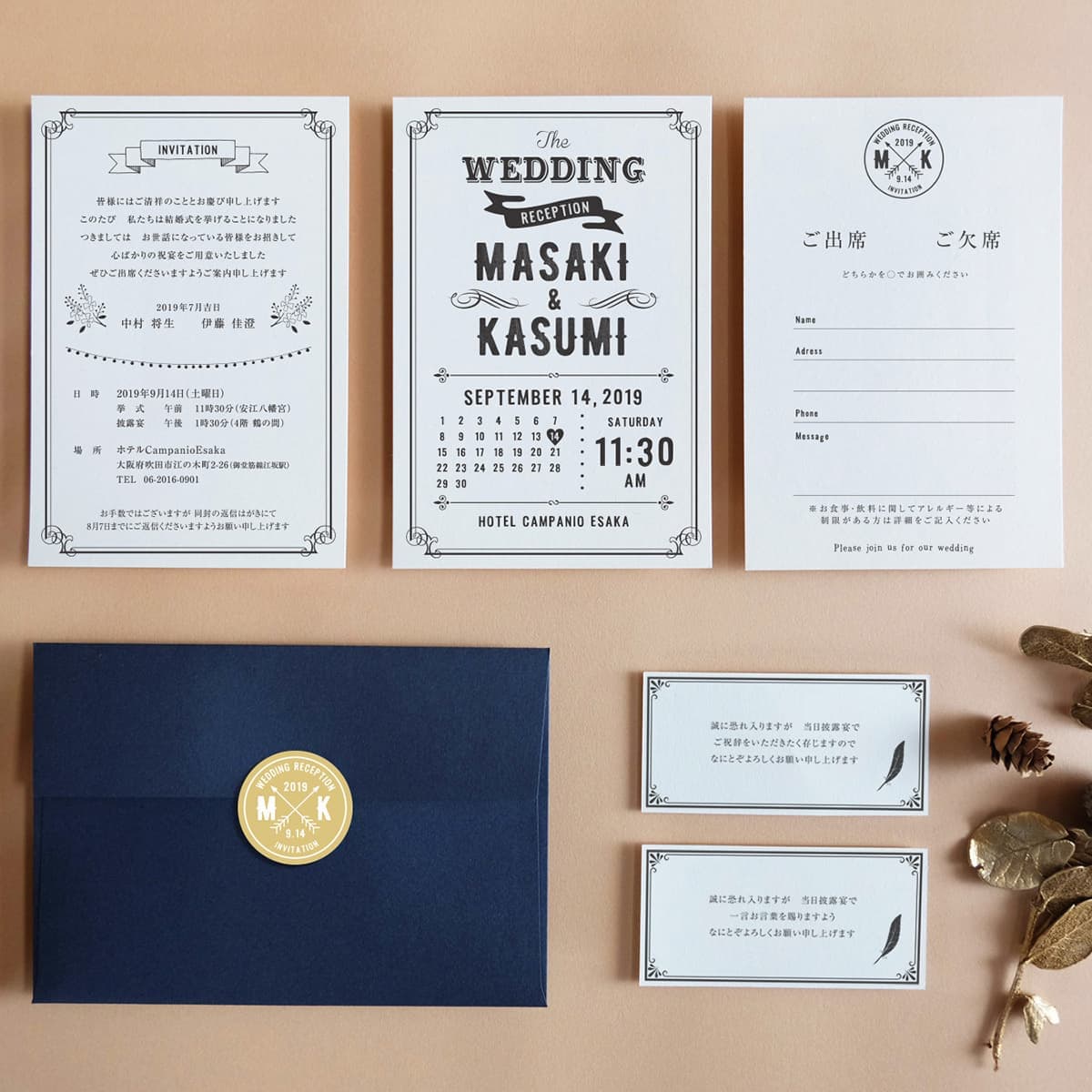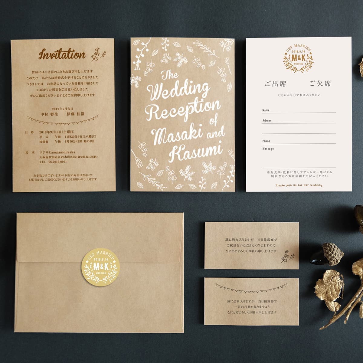 オリジナルの招待状セットをお作りします。全てのシリーズにオリジナルマークが入りますので、